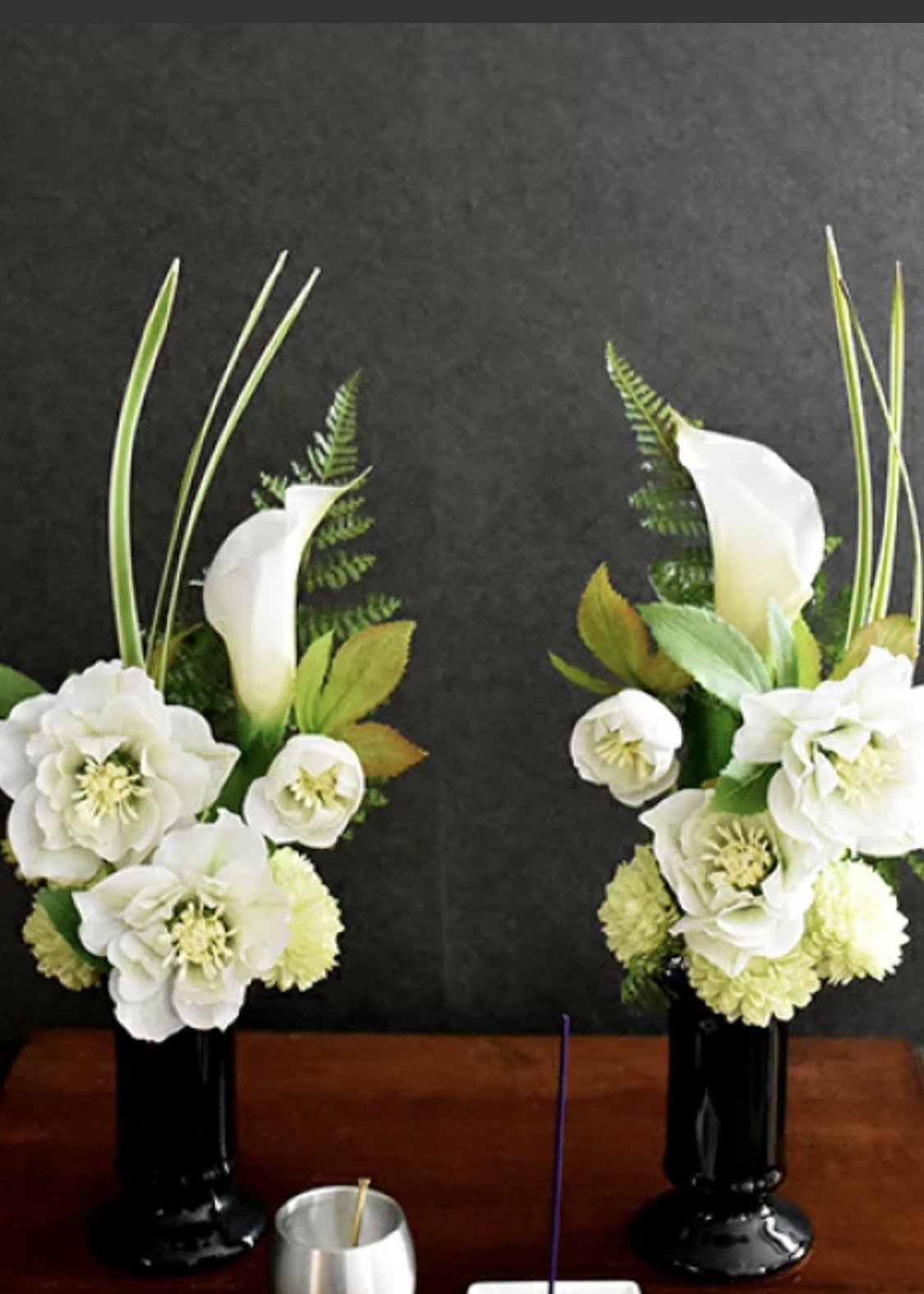 店舗に飾るアレンジ お供え用仏花アレンジ